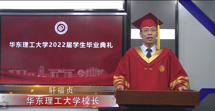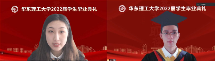 毕业生代表发言环节,本科生代表张珂璇向曾经教导、陪伴、帮助自己的老师、亲友、同学和在疫情期间全力保障学习生活的各界人士表达了诚挚感谢,并立志在奋斗中服务社会,在拼搏中历练成长,在实践中砥砺前行,成为母校的骄傲。研究生代表卢伟鹏回首了九年奋斗拼搏的华理求学生涯,表达了对母校的眷恋与感激之情,并表示作为国之未来的青年,要奋发图强,笃行不怠,不负家庭,不负社会,不负国家和人民。