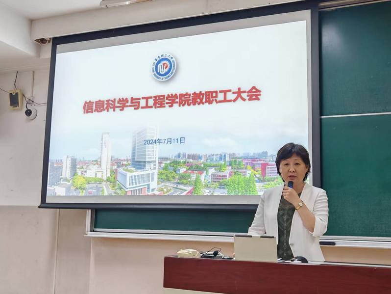 王慧锋充分肯定了信息学院2024年上半年的工作成绩和亮点,对入选上海学校课程思政示范课程、教学名师和示范团队、上海市首届“东方英才计划”教师项目以及在上海市高校教师教学创新大赛中获奖的老师表示祝贺。同时,她也指出了伴随学生体量增加,学院在教学管理及学生工作方面遇到的新问题,希望学院加大优秀教师典型事例宣传,发挥榜样引领作用,加强自身建设和外部合作,提升学院整体教育教学水平,围绕高质量发展,不断推进学院工作再上新台阶。