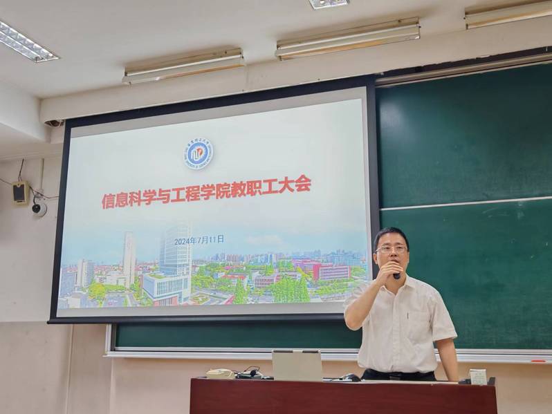 7月11日上午,信息学院2023-2024春季学期总结会暨学院教职工大会在八教107举行。校党委常委、副校长王慧锋出席会议并讲话,信息学院党政领导班子成员和全体教职工参加会议。会议由院长钟伟民主持。